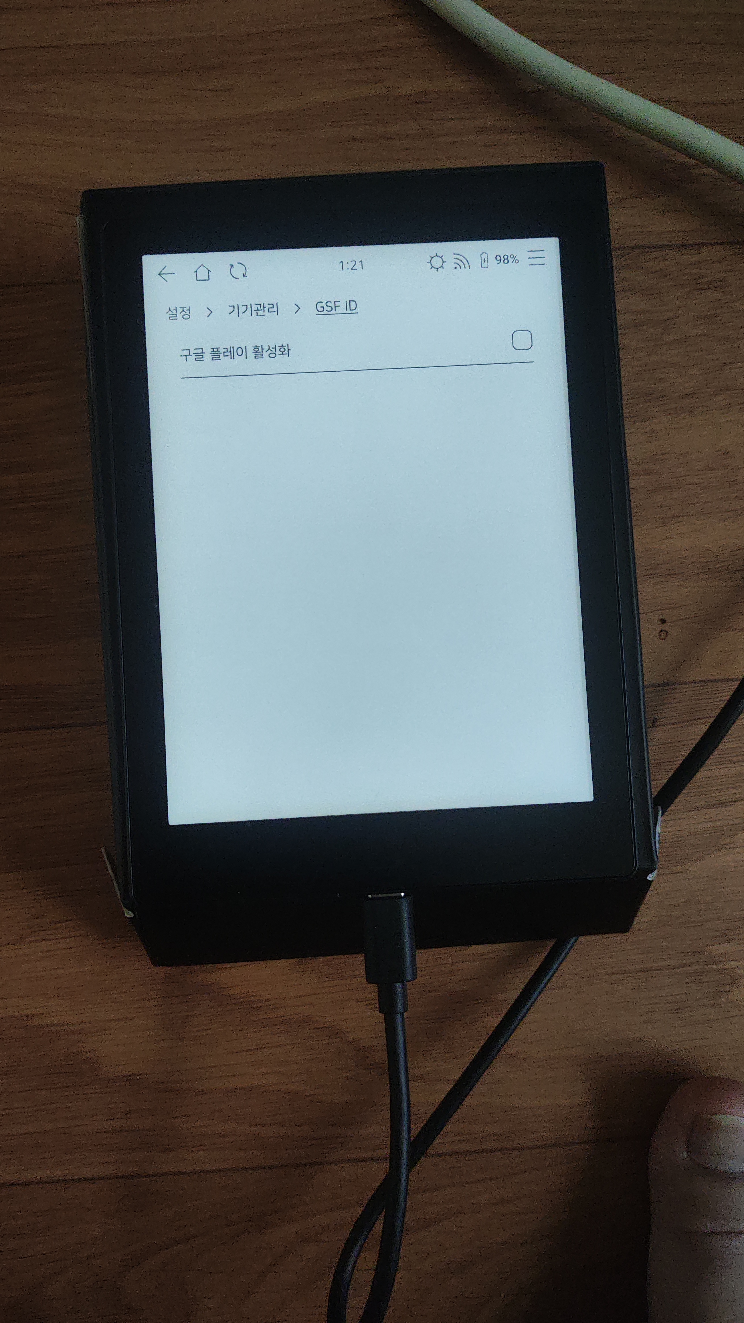 기기 하단부에 SD 카드를 넣을 공간이 있다. 전자책 단말기의 스토리지 용량은 여타 스마트폰과 같은 기기에 비해 적다. 그럼에도 SD 카드 지원도 되지 않는 기기가 꽤 있었는데 이 기기는 SD 카드를 지원하기 때문에 많은 책을 담을 수 있다는 점이 매력적으로 다가왔다.